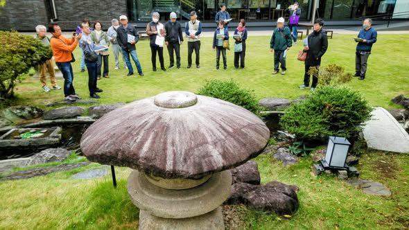 経過報告、役割確認とパンフレット原稿を使って追加研修の後、当日の巡見班毎に交代で解説しながら実際に延岡城址を1時間45分かけて巡見演習しました。